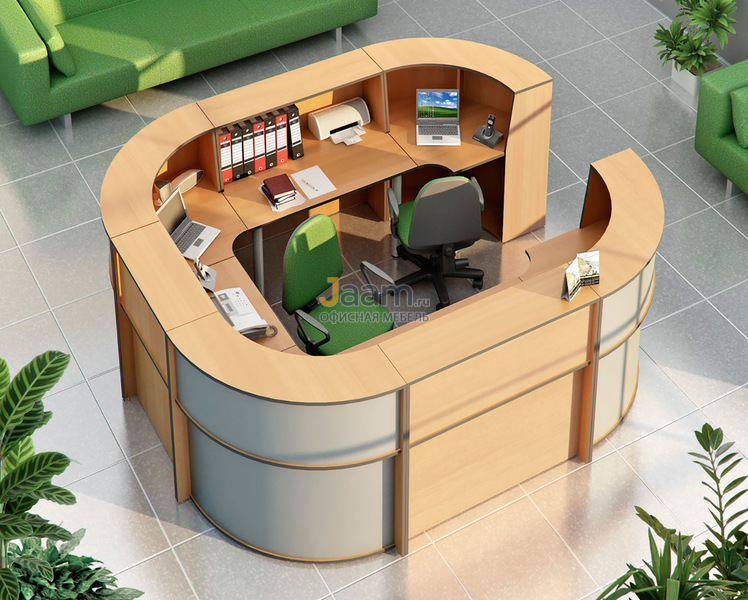 Место администратора — особая зона, при обустройстве которой важно соблюсти баланс между эстетикой и удобством. Стойка ресепшн Агат ресепшн — стильный вариант, который подчеркнет статус компании и обеспечит сотрудникам максимальный комфорт во время работы. Модель одновременно выполняет функции рабочего стола для персонала и гостевой столешницы для посетителей. Она выполнена из материалов с высоким запасом прочности, поэтому легко справляется с любыми нагрузками и позволяет ежедневно обслуживать большой поток клиентов.